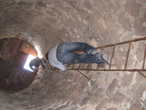 La comitiva pudo observar la construcción por dentro, donde encontraron algún fragmento de cerámica, y los más intrépidos –incluyendo el Concejal- ascendieron por la vertiginosa escalerilla, para llegar a lo alto de la torre, y poder disfrutar de las maravillosas vistas, además de realizar fotografías y analizar con qué otros puntos podría conectarse visualmente la torre, en su función de puesto de “vigilancia”.
